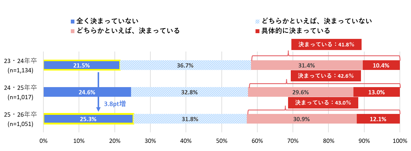 - 大学卒業後に自分が就きたい仕事・キャリアの方向性が「決まっている」学生が微増している一方、「全く決まっていない」学生も2年連続で増加【図1、2】