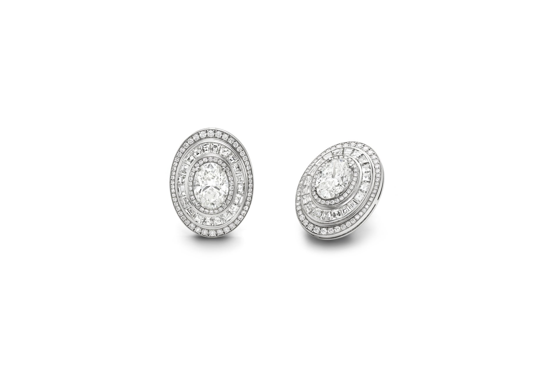 2025年10月18日(ローマ、イタリア)– 第20回 ローマ国際映画祭で俳優、アンジェリーナ・ジョリーがブルガリのハイジュエリーより、オーバルカットやステップカット、そしてパヴェセッティングされたダイヤモンドのイヤリングとリングを纏いました。