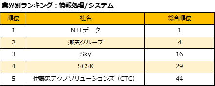 NTTデータが2年ぶりの1位を獲得。IT企業のランクアップが目立つ結果に