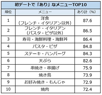 初デートでのお店選び“論争”に終止符!?初デートで「あり」「なし」なメニュー・お店ランキング発表