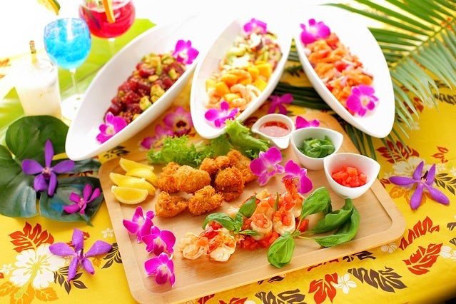 コロナが落ち着いたら行きたい海外旅行先ランキングで常に上位にランクインする「ハワイ」の雰囲気をホテルで味わえるビュッフェが登場!大阪市内随一の開放的なロケーションを誇るルーフトッププールを舞台に、異国情緒あふれるハワイアンビュッフェをGW期間限定で開催いたします。ガーリックシュリンプやアヒポキなどの定番ハワイアングルメの数々や、フラダンスのショーもお愉しみいただけます。