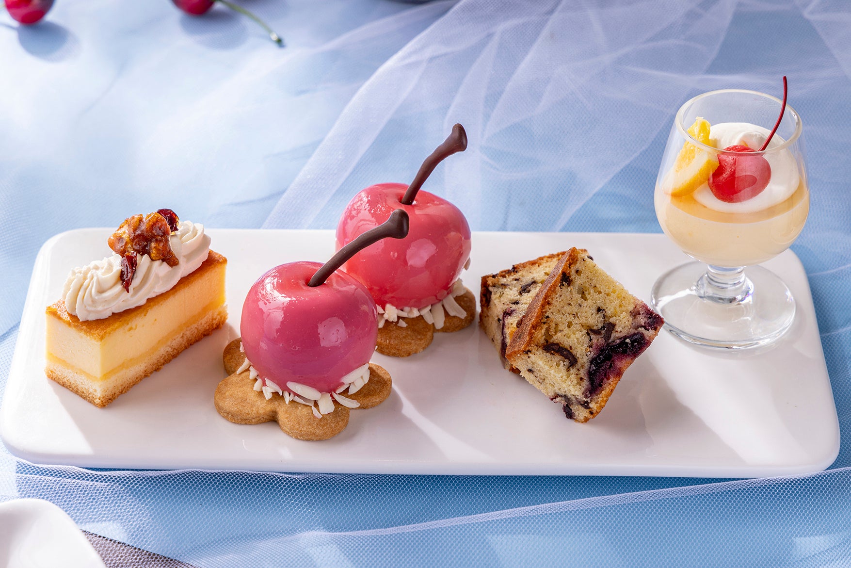 「大人のカジュアルアフタヌーンティー」では、繊細な味わいの生菓子から風味豊かな焼き菓子まで、アフタヌーンティー発祥のイギリスをはじめとするヨーロッパを代表するスイーツを取り揃えています。中でも旬のさくらんぼを使用したスイーツはこの時期ならではのフレッシュな酸味をお楽しみいただけます。アフタヌーンティーには欠かせないセイボリーには、ハーブとワインが効いたパテ・ド・カンパーニュやカラフルなピクルス、カルツォーネと充実したラインアップをご用意しました。