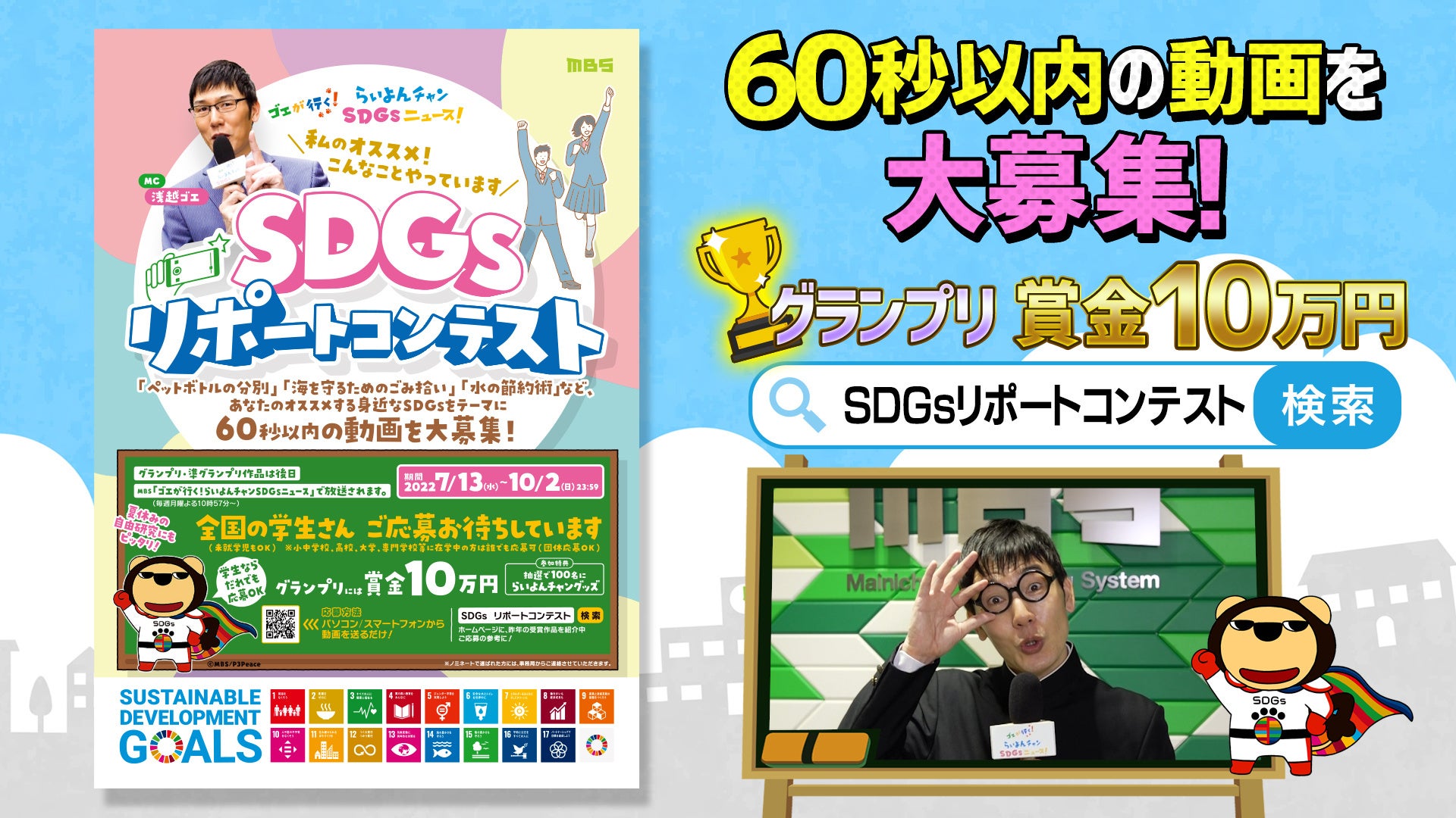 「ゴエが行く!らいよんチャンSDGsニュース リポートコンテスト」では、MBSで放送中の『ゴエが行く! らいよんチャンSDGsニュース!』とのコラボ企画として、学生や子供たちから誰でも続けられそうなSDGsの行動や研究をリポート形式の動画を募集。