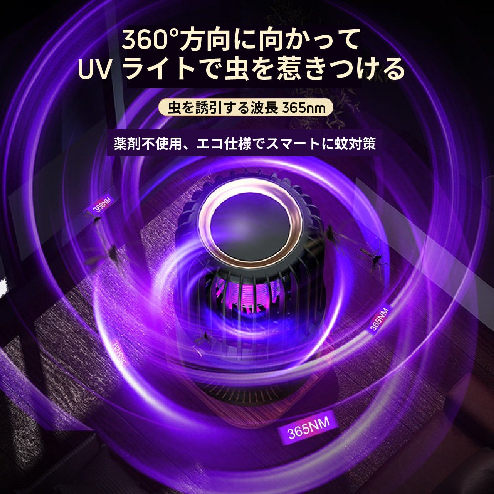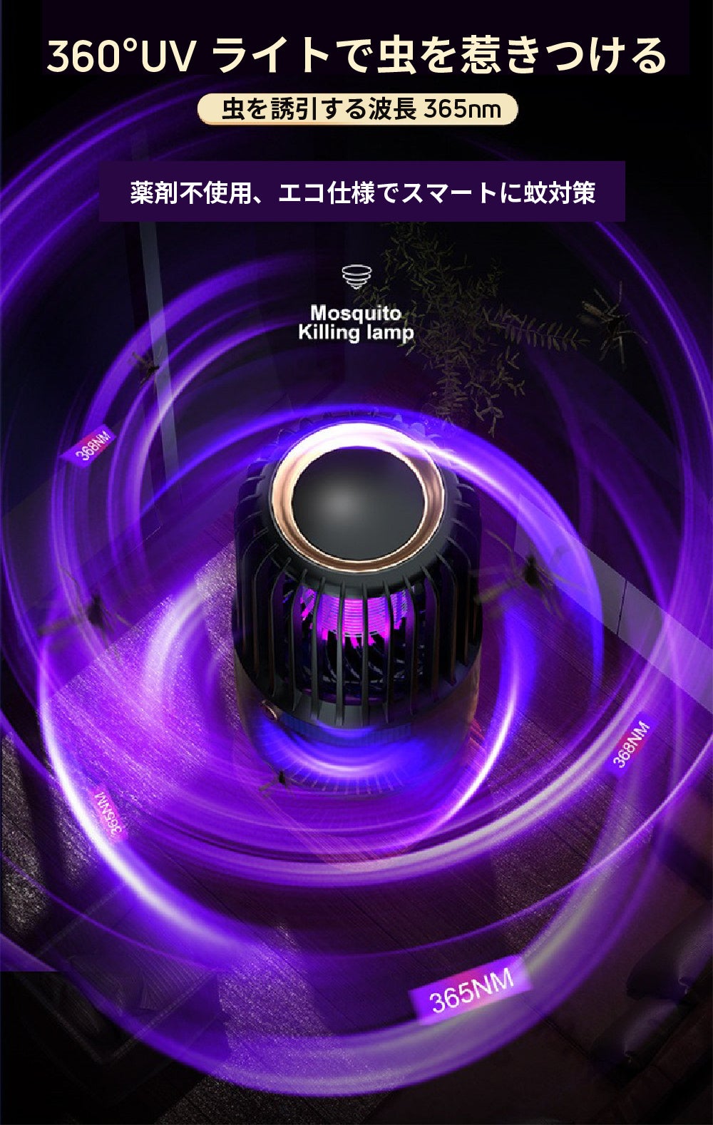 - 虫が惹きつけられる波長365nmのUVライトで誘引