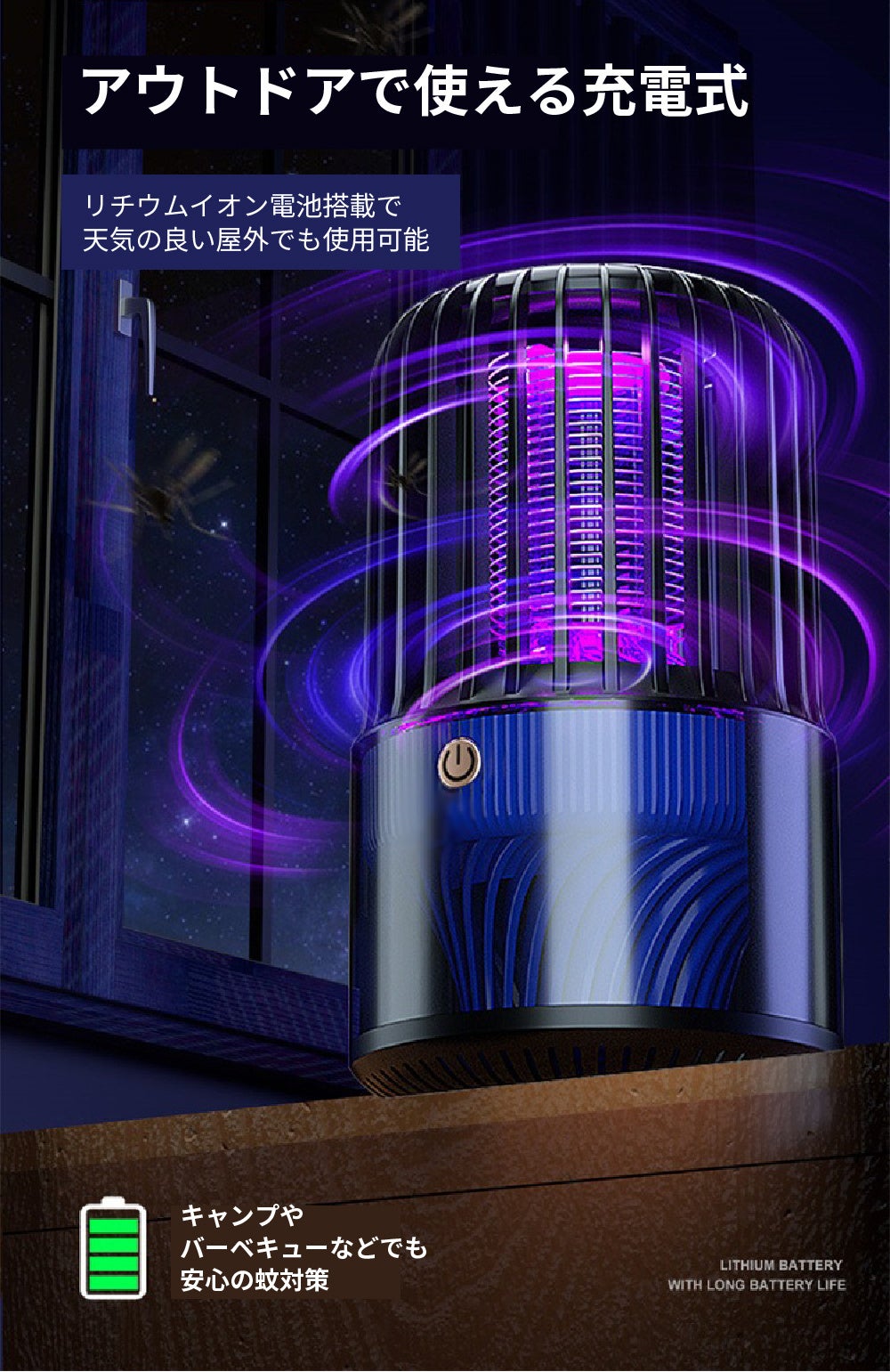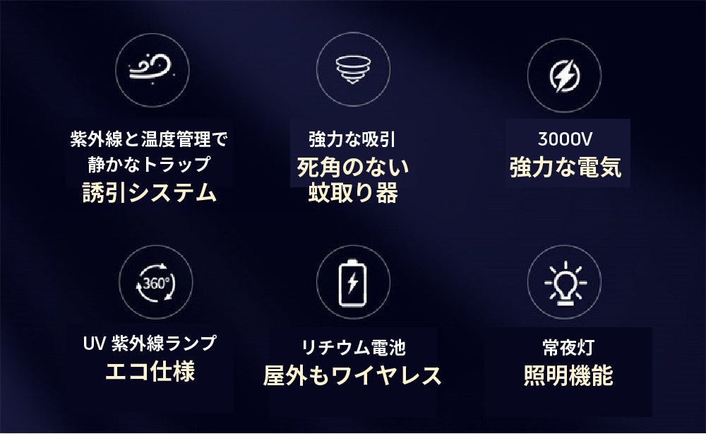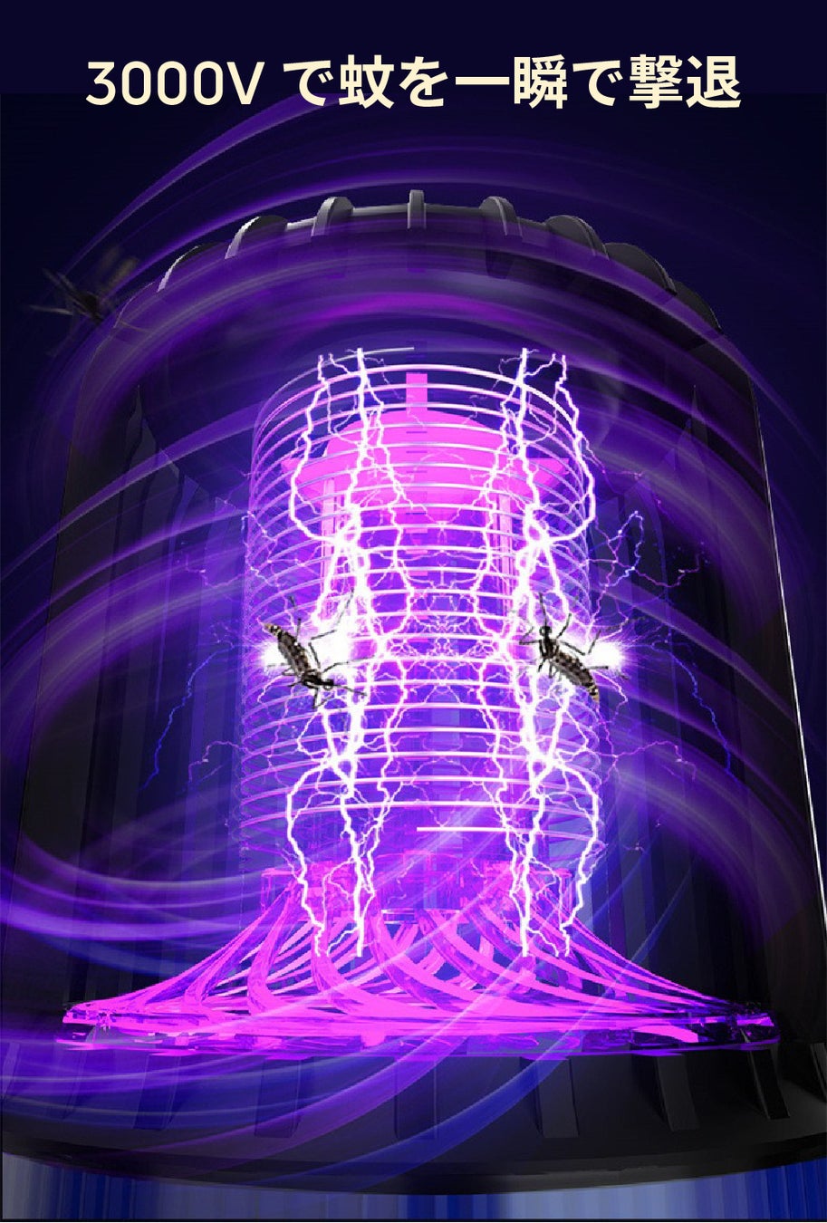 - 周囲の蚊を誘引したら、3000Vの電圧でしっかり撃退!