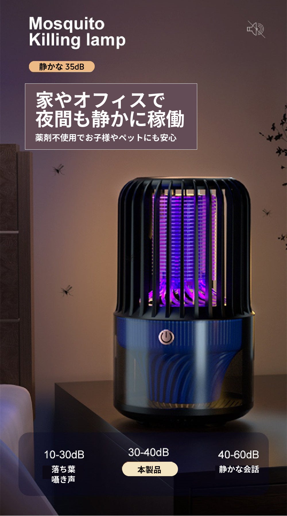子供やペットに/夜間やオフィスでも使える静音設計35dB/USB充電式