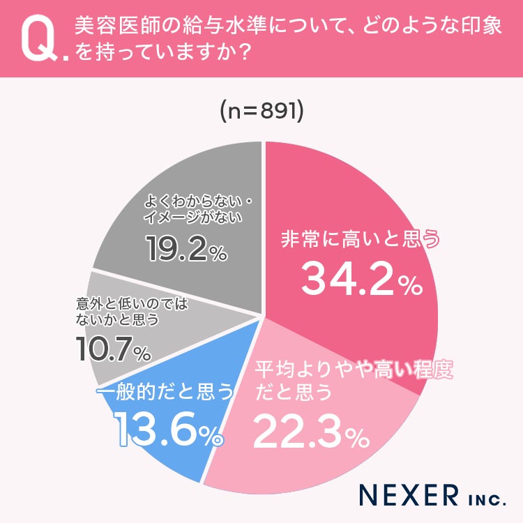 また美容医師の給与水準について、どのような印象を持っているのかも聞いてみました。
