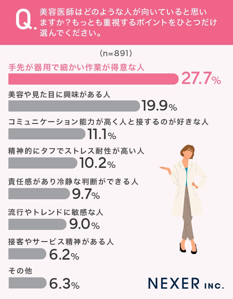 ■27.7%が美容医師は「手先が器用で細かい作業が得意な人」が向いていると思うと回答