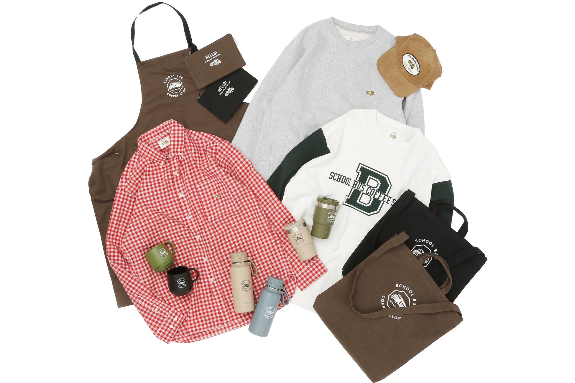 今回のコラボアイテムはSCHOOL BUS COFFEE STOPの象徴となるロゴやモチーフをあしらい、アパレル・服飾雑貨・生活雑貨と、性別問わずユニセックスでお使いいただけるアイテムをラインアップ。このコラボアイテムはららぽーと堺店の他、関西エリア9店舗、公式WEBストア .st(ドットエスティ)で限定販売いたします。ららぽーと堺店では、コラボアイテムをお買い上げいただいたお客さまに先着で、SCHOOL BUS COFFEE STOP堺店のみでお使いいただけるドリンクチケットをプレゼントいたします。
