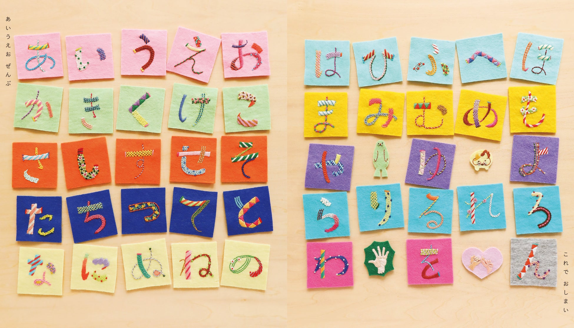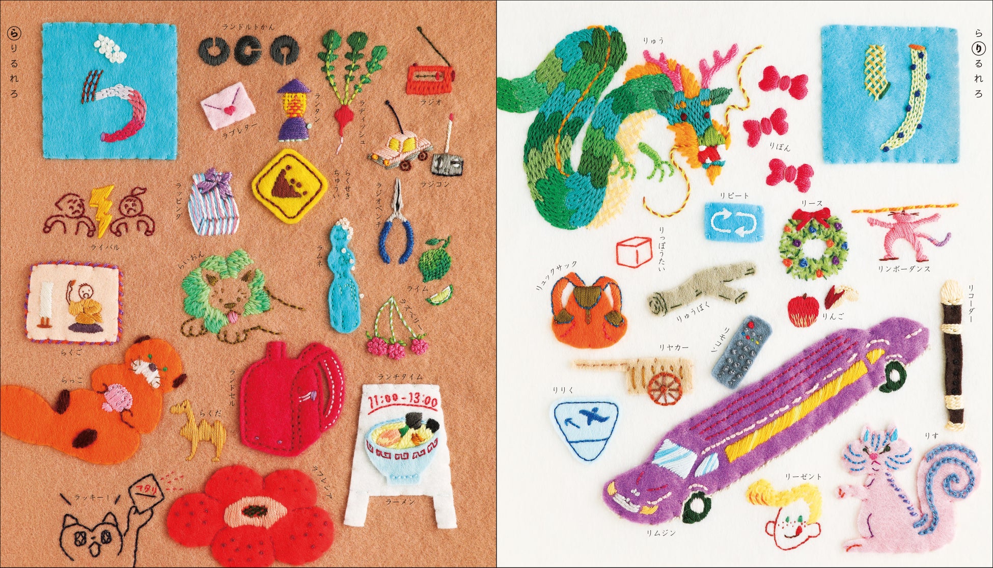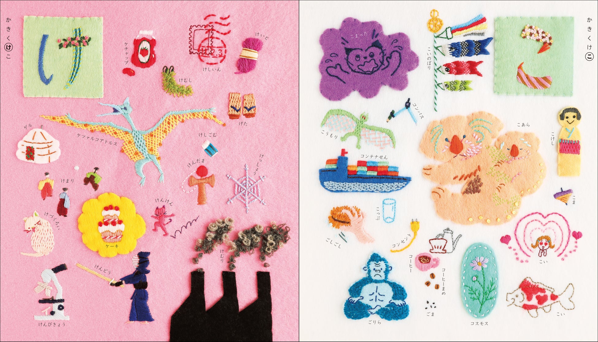 ひらがなをおぼえながら、たくさんのことばを知り、刺繍でできたかわいくてゆかいなモチーフにも出会える、そんな新しい絵本です。