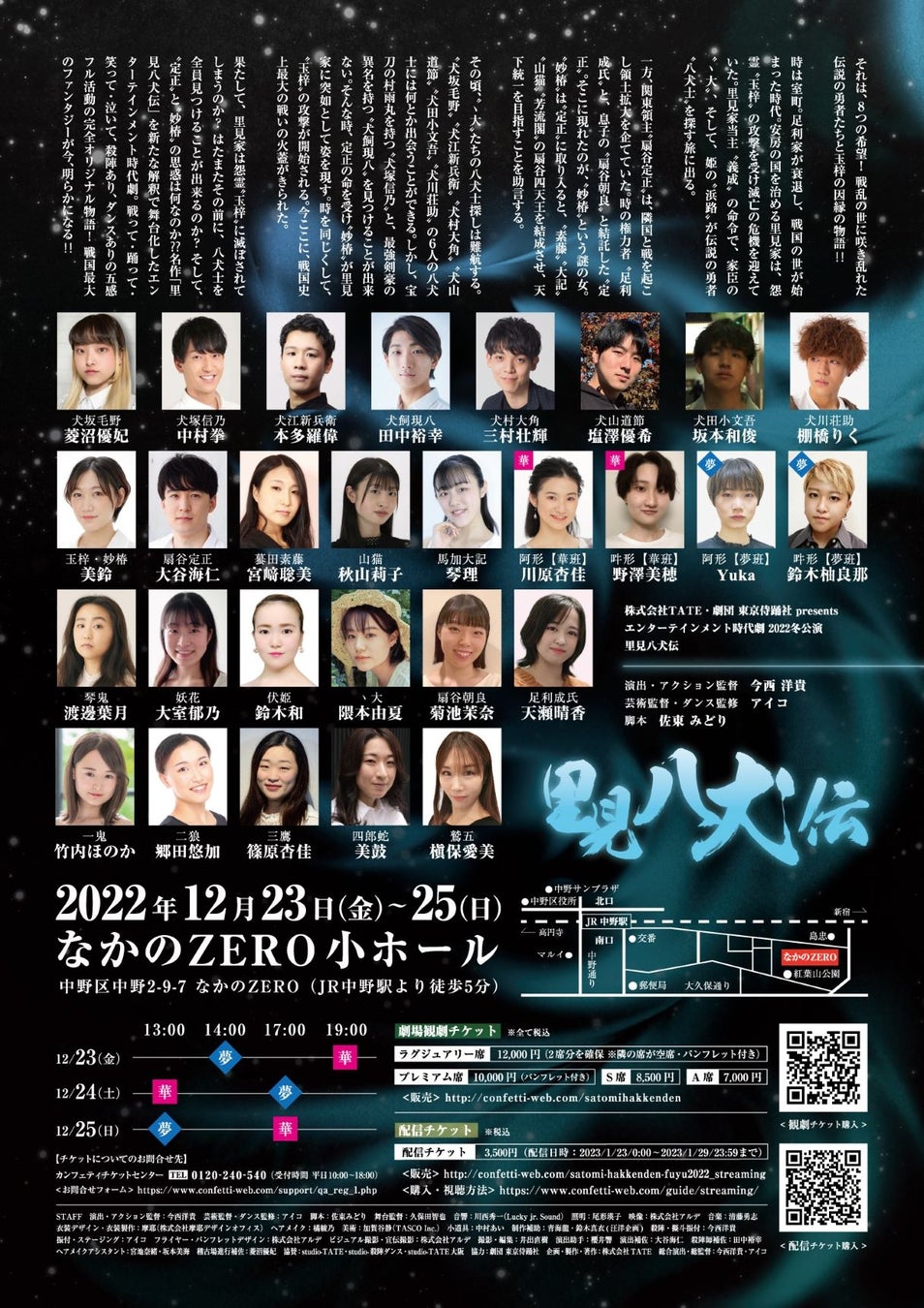 2022冬公演『里見八犬伝』が2022年12月23日 (金) ~2022年12月25日 (日)になかのZERO 小ホール(東京都中野区中野2丁目9番7号)にて上演されます。