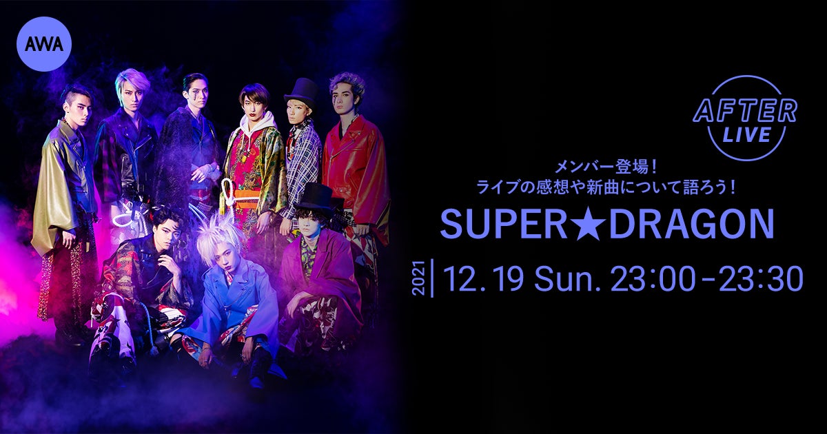 AWA株式会社(本社:東京都港区、代表取締役CEO:冨樫晃己)が運営する、サブスクリプション型(定額制)音楽ストリーミングサービス「AWA(アワ)」は、2021年12月19日(日) 23:00~23:30の 30分に渡り、オンライン空間「LOUNGE」で、SUPER★DRAGONの立川ステージガーデンで開催されるライブの公式アフターパーティー&新曲「X」のリスニングパーティーを開催いたします。