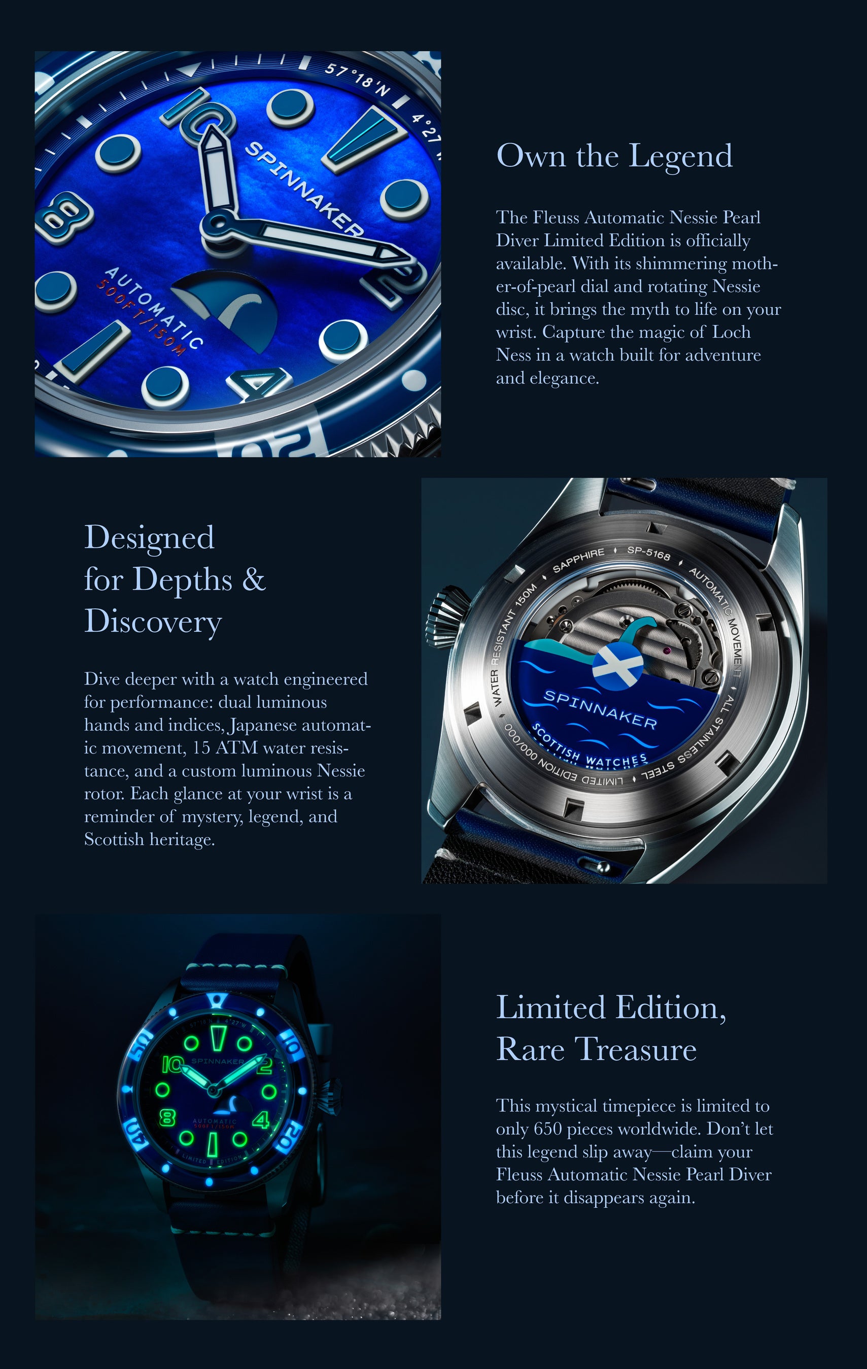 ネッシーが出現!しかも光る!『SPINNAKER』のネッシーコラボ時計第二弾はギミックに富む『Fleuss Automatic Nessie Pearl Diver Limited Edition』。