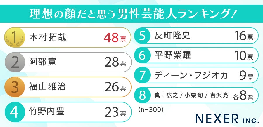 そこで今回は、HAABクリニックと共同で、50代以下の男性300名を対象に、「理想の顔だと思う男性芸能人」についてアンケートを実施しました。