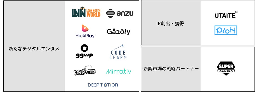 エンターテインメント領域における新規IPの創出や、新たなエンターテインメントビジネスを展開するスタートアップ