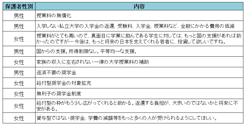 【図4】教育資金について、どのような補助があればよかったと思うか(自由回答)