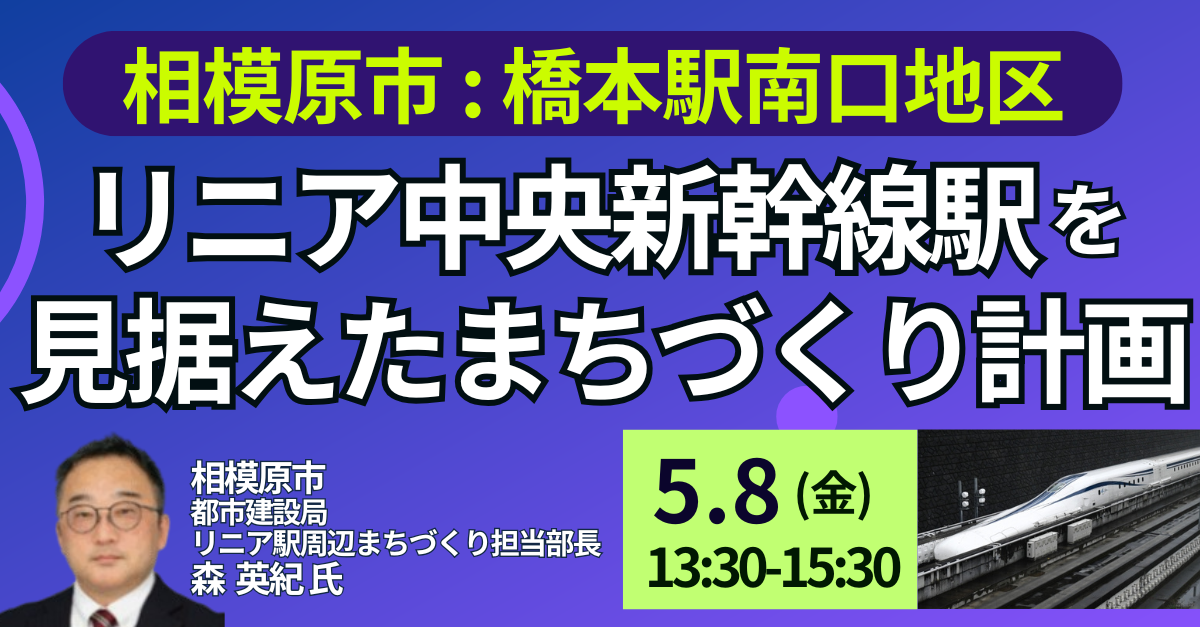 【JPIセミナー】相模原市「橋本駅南口地区におけるリニア中央新幹線駅を見据えたまちづくり計画と今後の展開」5月8日(金)開催