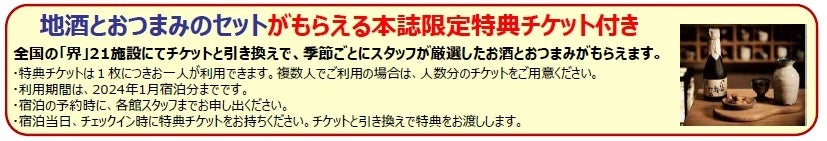また、ユニークな温泉や人気の土産、洗練されたユニフォームも紹介しているので、読むだけでも旅に行った気になれるガイドブック的なファンブックです。オリジナル地酒とおつまみがもらえる特典チケットも付いた、宿泊前に手に入れておきたい一冊です。