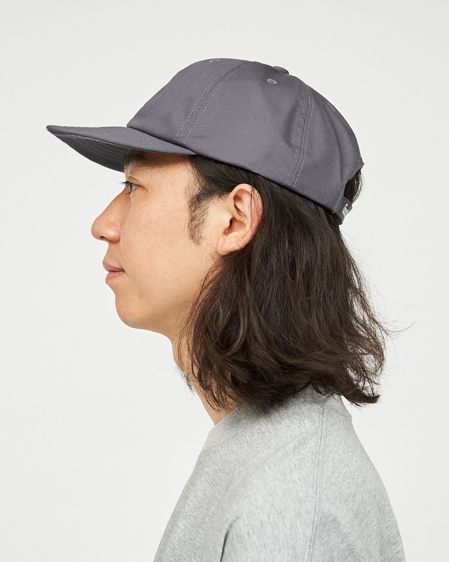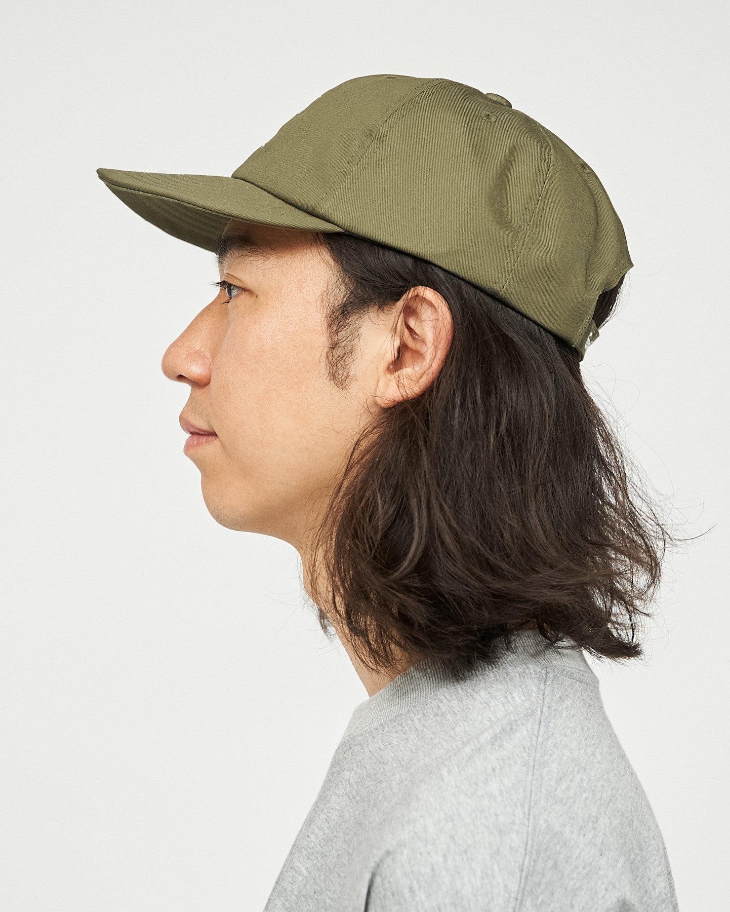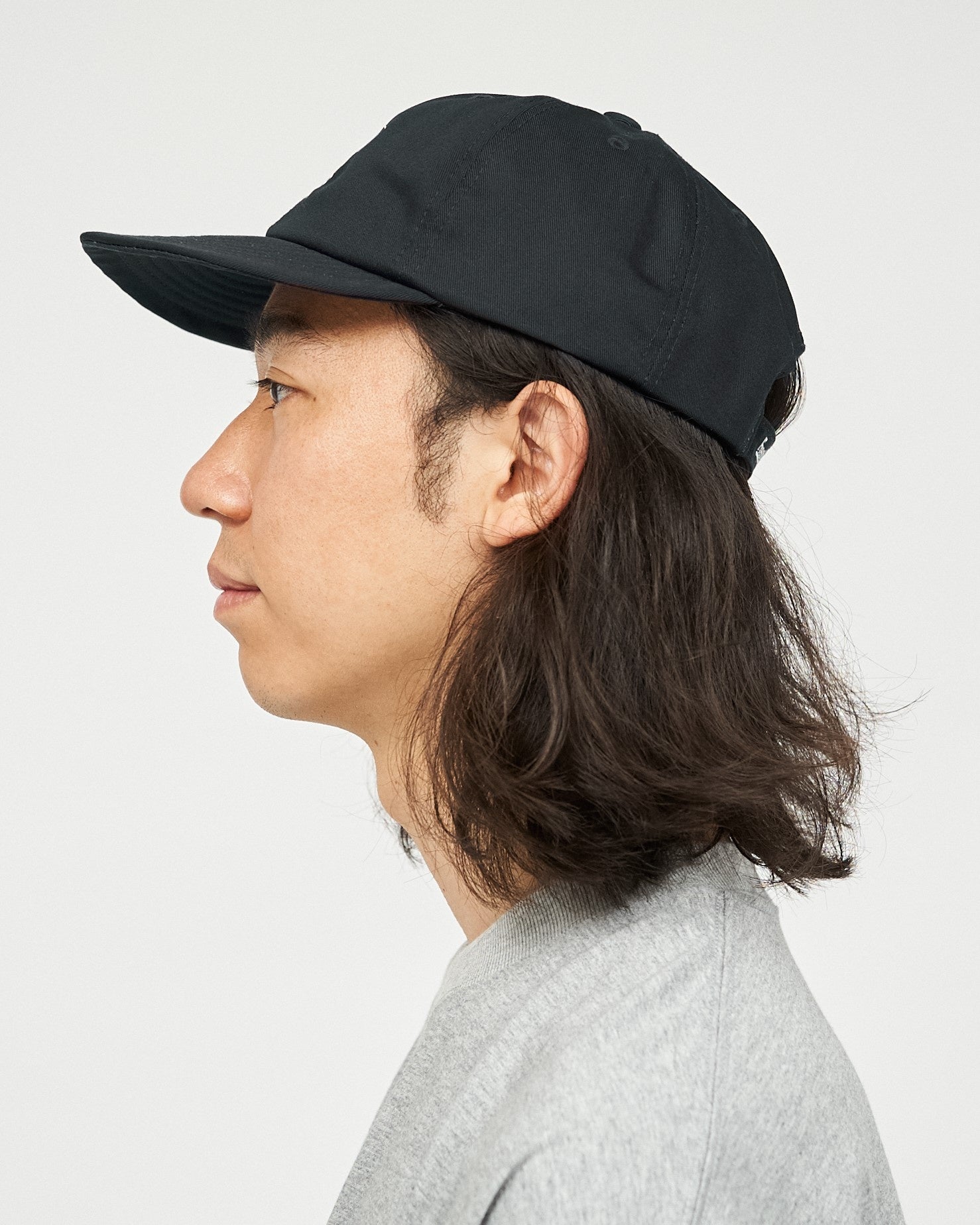 ポリエステル65%、コットン35%で製作した生地は、撥水撥油加工を施しており汚れを弾く効果が。フラットなバイザーにはソフトな芯を使用することでコンパクトに折り畳みが可能で、ポケットやカバンに入れるのも便利。後ろのバックルで頭周りの調節が可能です。