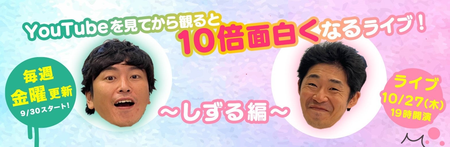 YouTube×リアルライブの新企画始動!『 YouTubeを見てから観ると10倍面白くなるライブ!』第一弾は~しずる編~ライブの打ち合わせの様子などをYouTubeで事前に公開