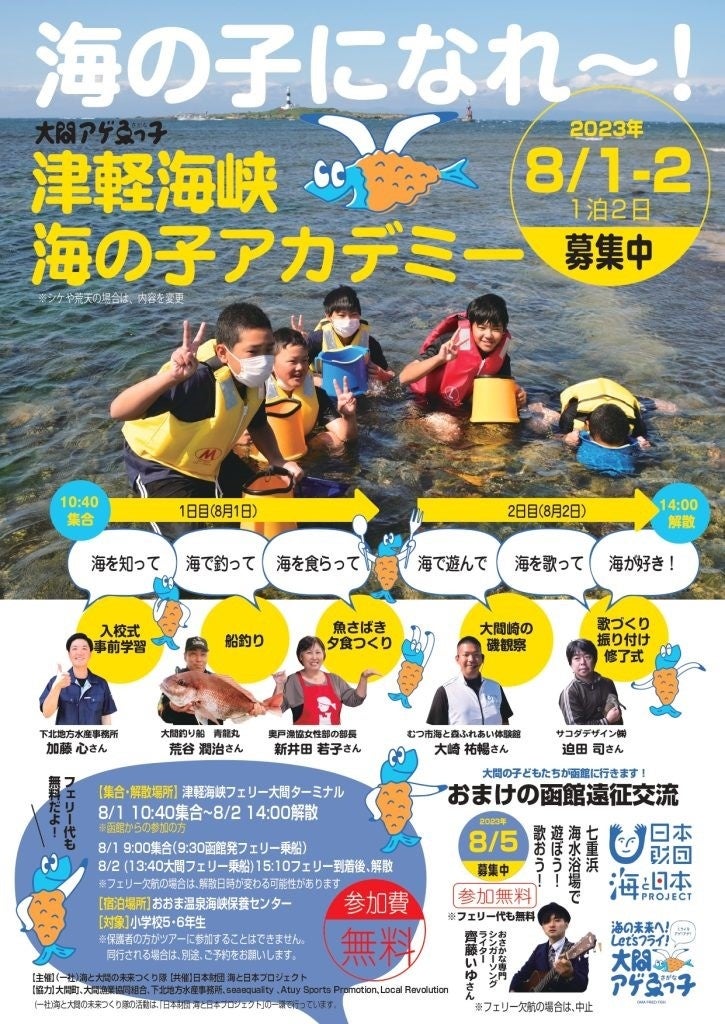 【参加者募集中】海を知って釣って食らって遊んで、海の子になれ~!<大間アゲ魚っ子キャンペーン>小学5・6年生向けプログラム「津軽海峡 海の子アカデミー」を開催!