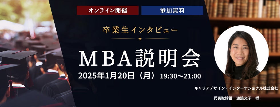 人生100年時代を迎え、キャリアにおける「マルチステージの人生」と「幅広い選択肢」が浸透しています。同時に、テクノロジーの進化により企業活動の可能性や自由度が激変し、組織の力を最大限に生かすマネジメント力やコラボレーション力、経営スキルも重要視されています。この背景から、MBAの学習ニーズが高まり、文部科学省が発表した系統別在籍者数から推定すると、日本では年間約2,500人がMBAを取得しています。この度、当社では、MBAをお考えの方あるいはスキルアップを目指す方を対象に、リアルな声を聴ける場として、本イベントを開催いたします。