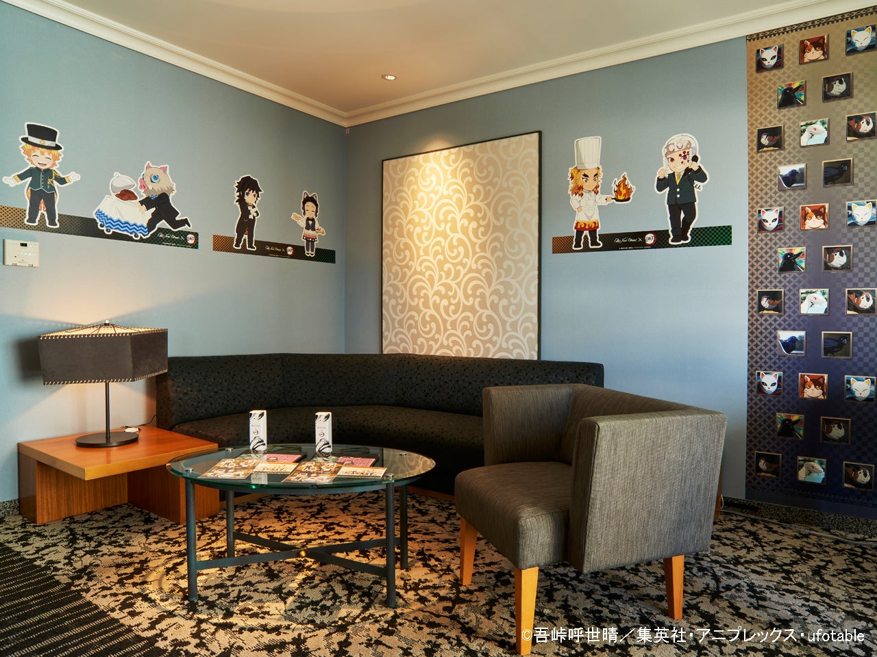 その他ホテルスタッフの制服を身にまとったufotable描き下ろしのキャラクターや、アニメの名場面をコラージュした壁紙など、細部にまでこだわったお部屋でのホテルステイを心ゆくまでお愉しみください。