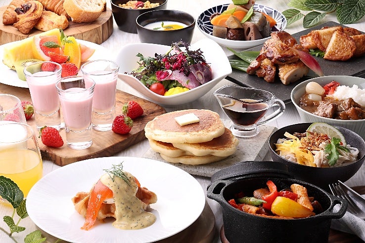 鹿児島の空と海の青をテーマにした開放感あふれるレストランでは、雄大な桜島と錦江湾を望む絶景とともに、地元食材をふんだんに使った約40種の朝食ブッフェをお楽しみいただけます。定番の卵料理やパンのほか、鶏飯やさつまあげなどの郷土料理、「鶏飯風フォー」やライブキッチンで提供するスモークサーモンベネディクトなど、多彩なメニューをご用意。さらにランチタイムには、チキンオムライス、牛スジビーフカレー、鯛のアクアパッツァ、黒毛和牛のステーキや煮込みハンバーグ、本日の刺身御膳や天ぷら御膳など、豊富なラインナップが揃います。いずれもサラダ・パン・スープ・デザート・コーヒー付きで、ゆったりとした贅沢な時間をお過ごしいただけます。