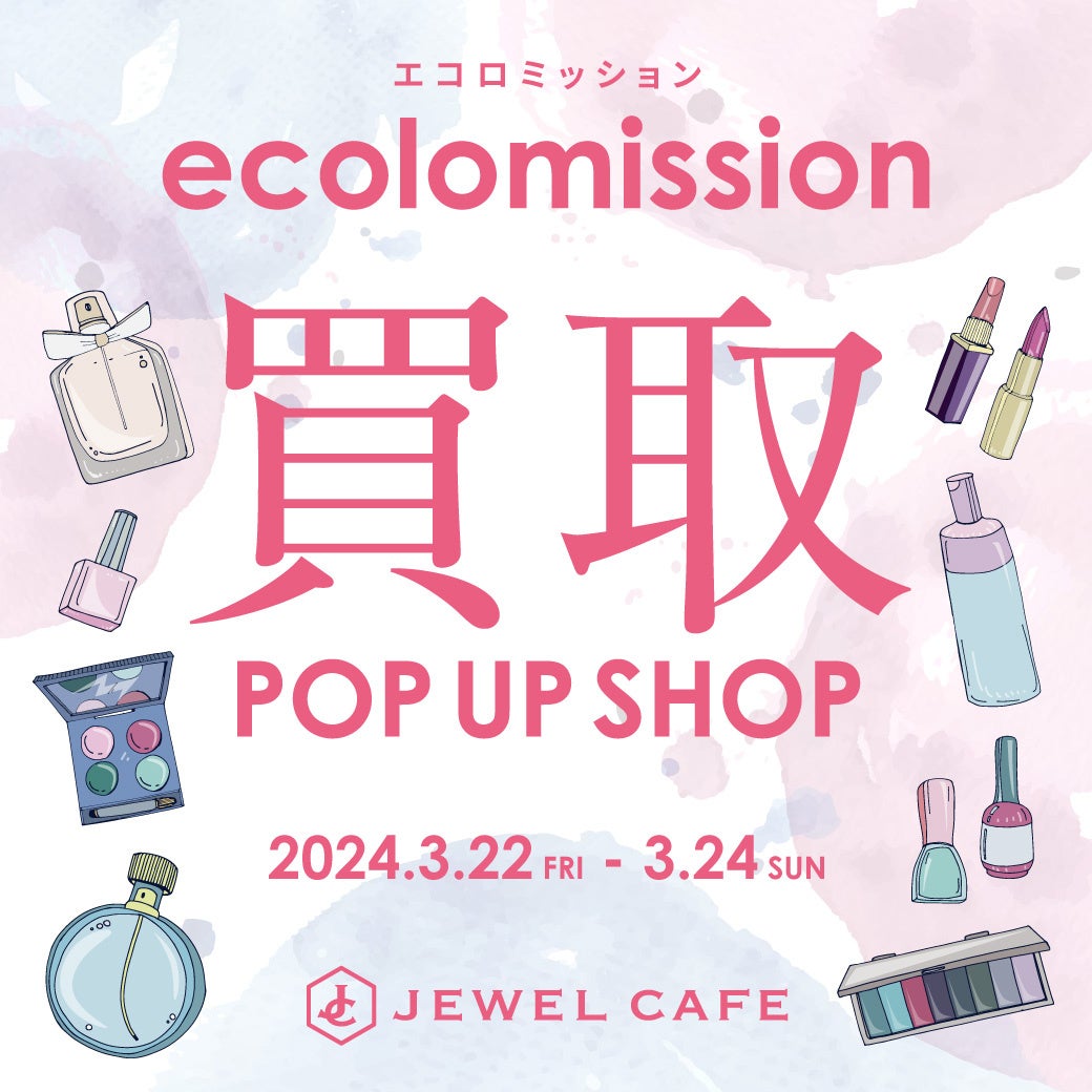 春の新生活にむけた買い替えニーズの拡大に合わせて、西武渋谷店では、3月22日(金)~24日(日)の期間、全国で250店舗以上を展開する総合リユース専門店「ジュエルカフェ」のコスメ買い取りポップアップショップ「ecolomission[エコロミッション]」を期間限定で展開いたします。百貨店初展開である当ショップでは、ご自宅に眠っているご不要のコスメをご持参いただくと、その場で査定し、買い取り金額相当分の「西武商品券」を発券いたします。