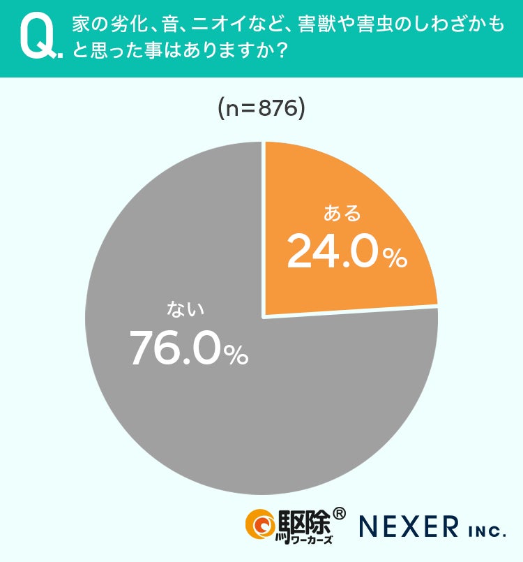 ■24%が家の異変が害獣や害虫のしわざかもと思ったことが「ある」