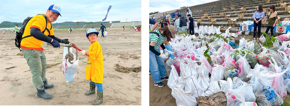 こうした地元の海のちょっとしたごみ拾い活動を”特別な体験”ではなく”生活の習慣”にできないかと考え、J2サッカーチーム「ベガルタ仙台」とコラボレーションした宮城県内の海岸の清掃活動「ビーチクリーンプロジェクト」を実施しています。今回は宮城県東松島市の野蒜海岸、大浜海岸、月浜海岸の3海岸でビーチクリーン活動を実施。ベガルタ仙台のサポーターをはじめとした地域の方々約1000名が集いました。