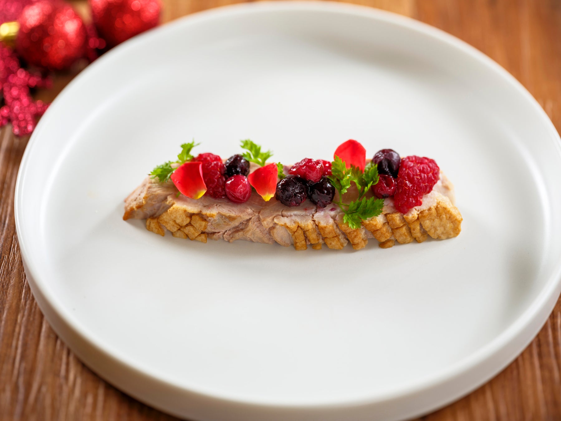 クリスマス限定メニューのローストチキンや神戸ポークとプルーンのパイ包み焼き、合鴨のロースト ベリーの赤ワインブレゼ添えなど、シェフが創意工夫を凝らしたお料理の数々をテーブルオーダー制でお好きなだけご賞味いただけます。