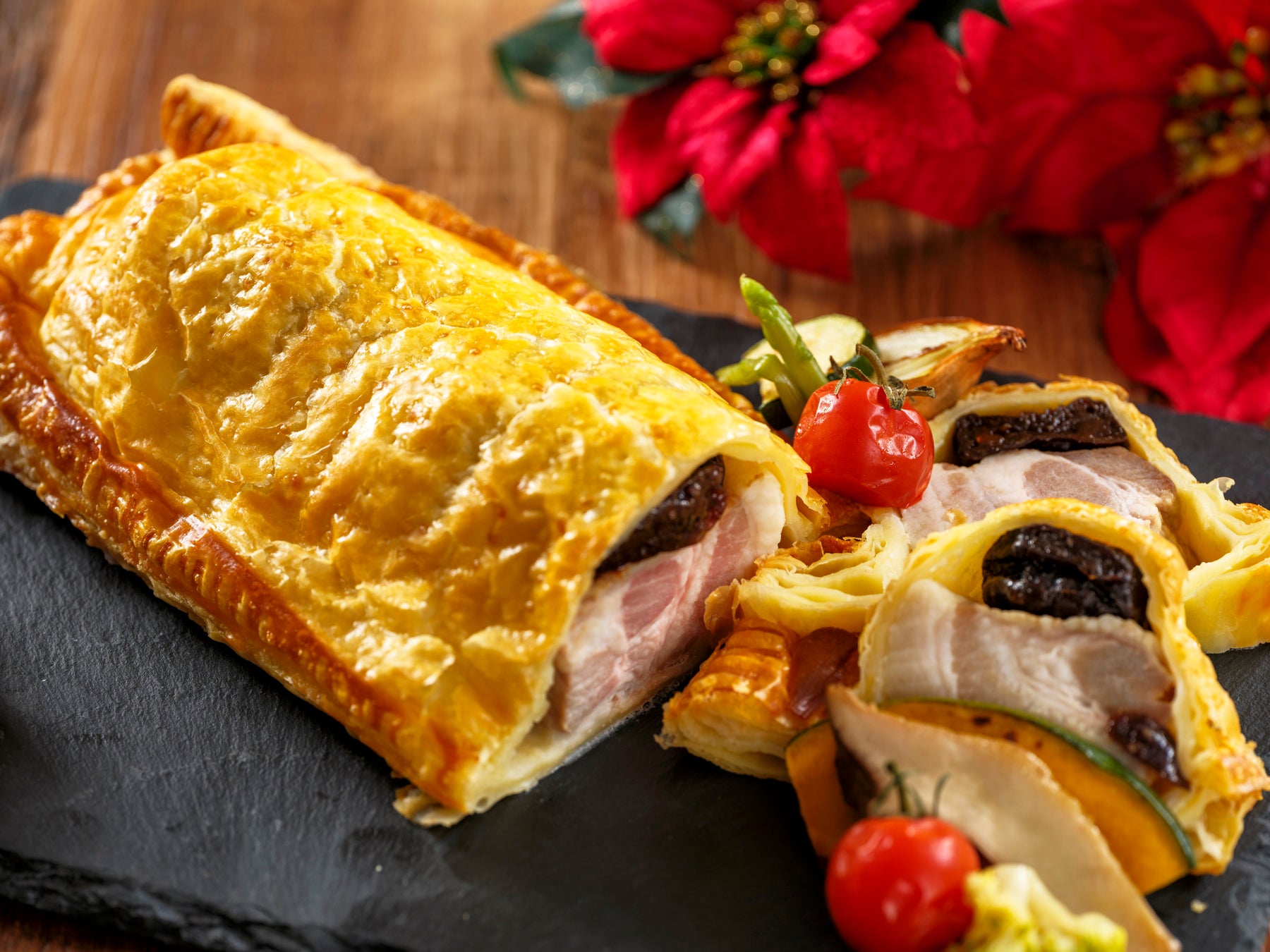 【メニュー例】神戸ポークとプルーンのパイ包み / 合鴨のロースト ベリーの赤ワインブレゼ添え