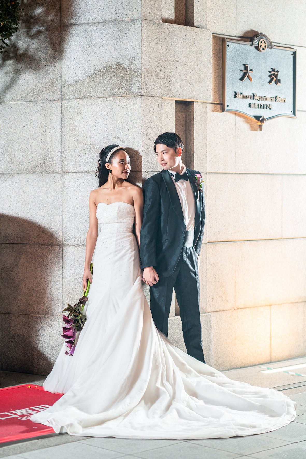 Style Lilyの前撮りは新郎新婦様のご要望や撮影したいスポットなどに応じてお見積もりを提案するオリジナルのプランです。詳細は下記からお問い合わせください。撮影事例は夕景から夜景、閉店後の百貨店を舞台にしています。