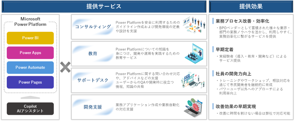 お客様企業のPower Platform導入・活用に対するサポートを提供し、ビジネス変革を支援