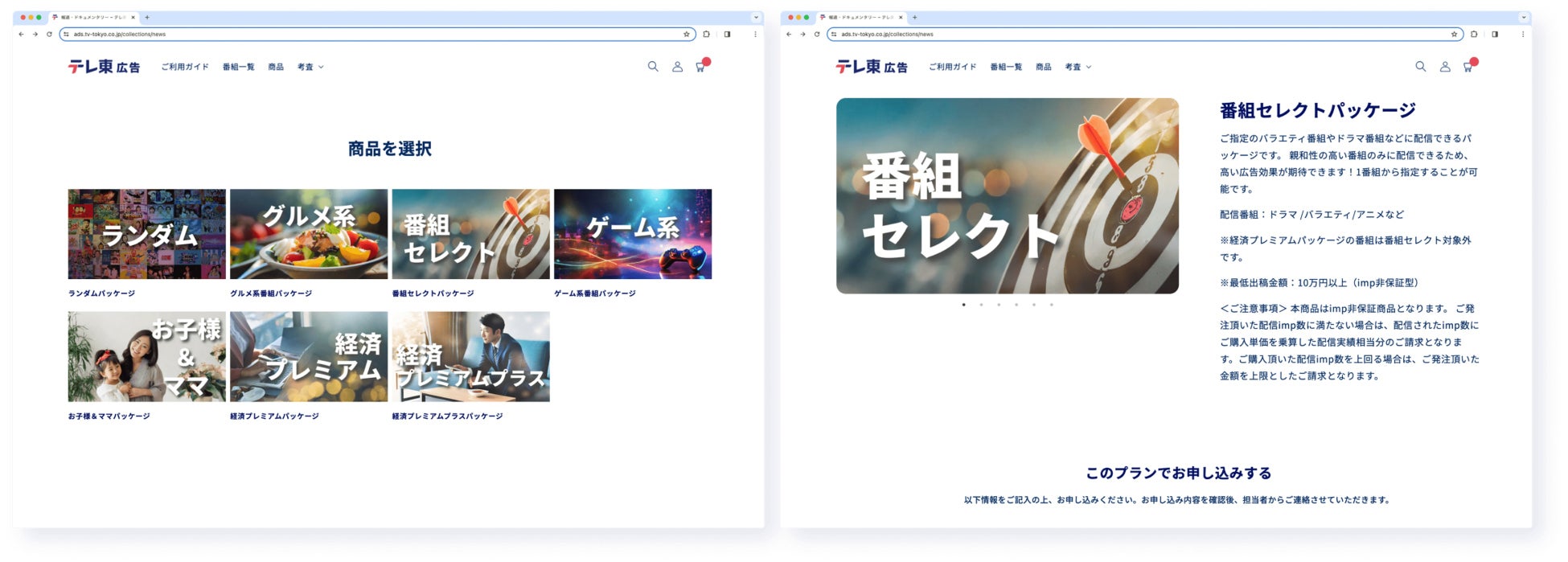 民放公式テレビ配信サービス「TVer」や、テレビ東京公式動画配信サービス「ネットもテレ東」で流すCMについて、番組検索、出稿プラン検討、見積もり、広告審査、申し込みまでをオンラインで、ワンストップで行うことができるようになります。出稿が初めてという企業や担当者の方も、複雑なステップを介さずに簡単に広告出稿を始めることが可能です。