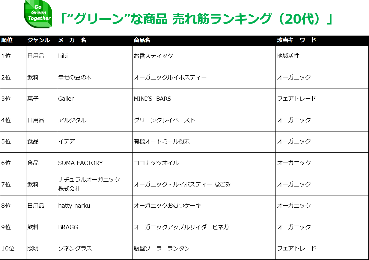 「“グリーン”な商品 売れ筋ランキング(20代)」