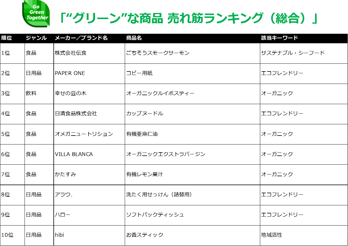 「“グリーン”な商品 売れ筋ランキング(総合)」