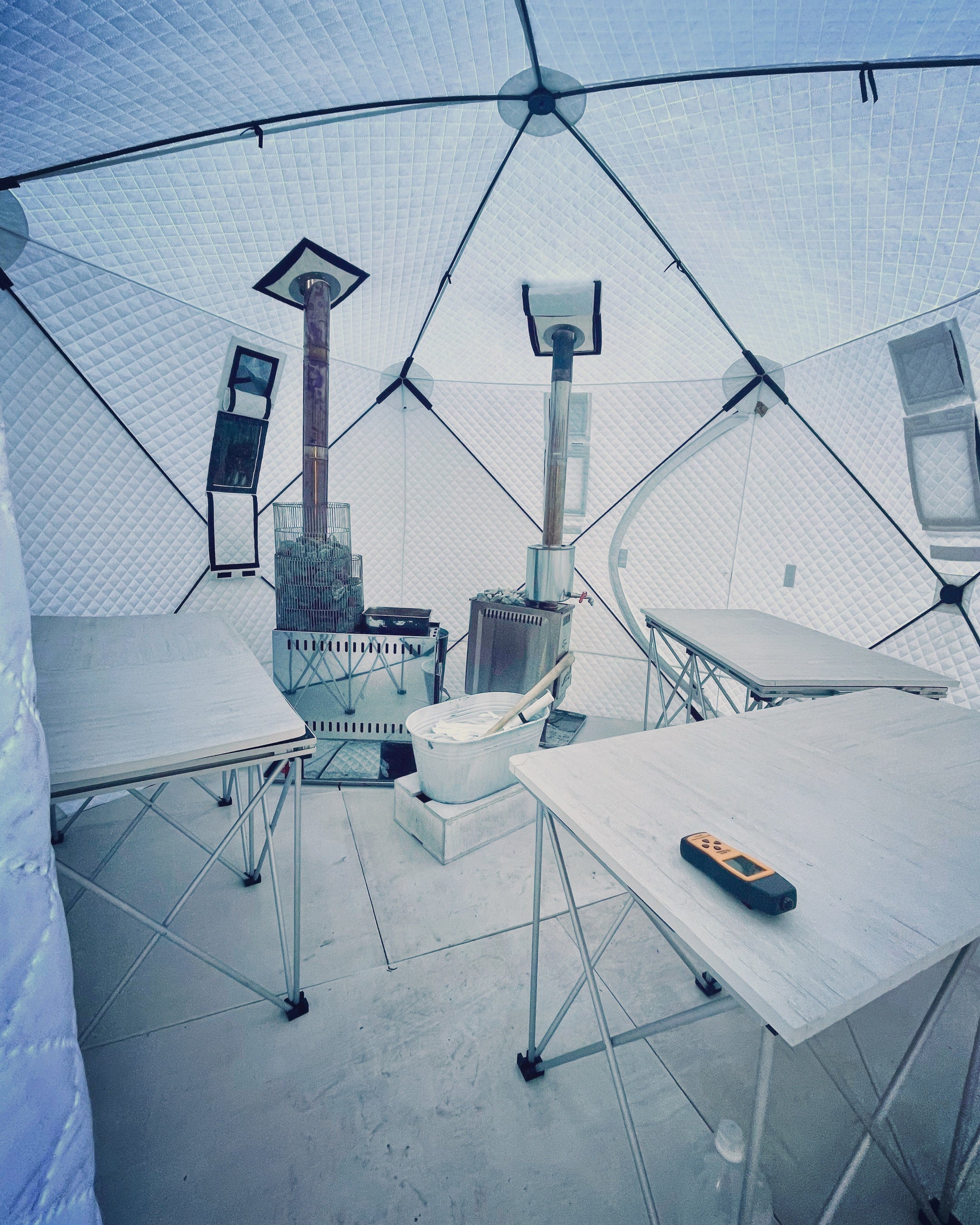 テントサウナを極めた精鋭集団“madsaunist” が3月の少し肌寒い屋外でのテントサウナ空間を最高のものにするべくセッティングをプロデュースいたします。“madsaunist” は 「サウナタウン下北沢」のテントサウナセッティングも 監修しております。 ※madsaunist詳細はこちら https://madsaunist.com/