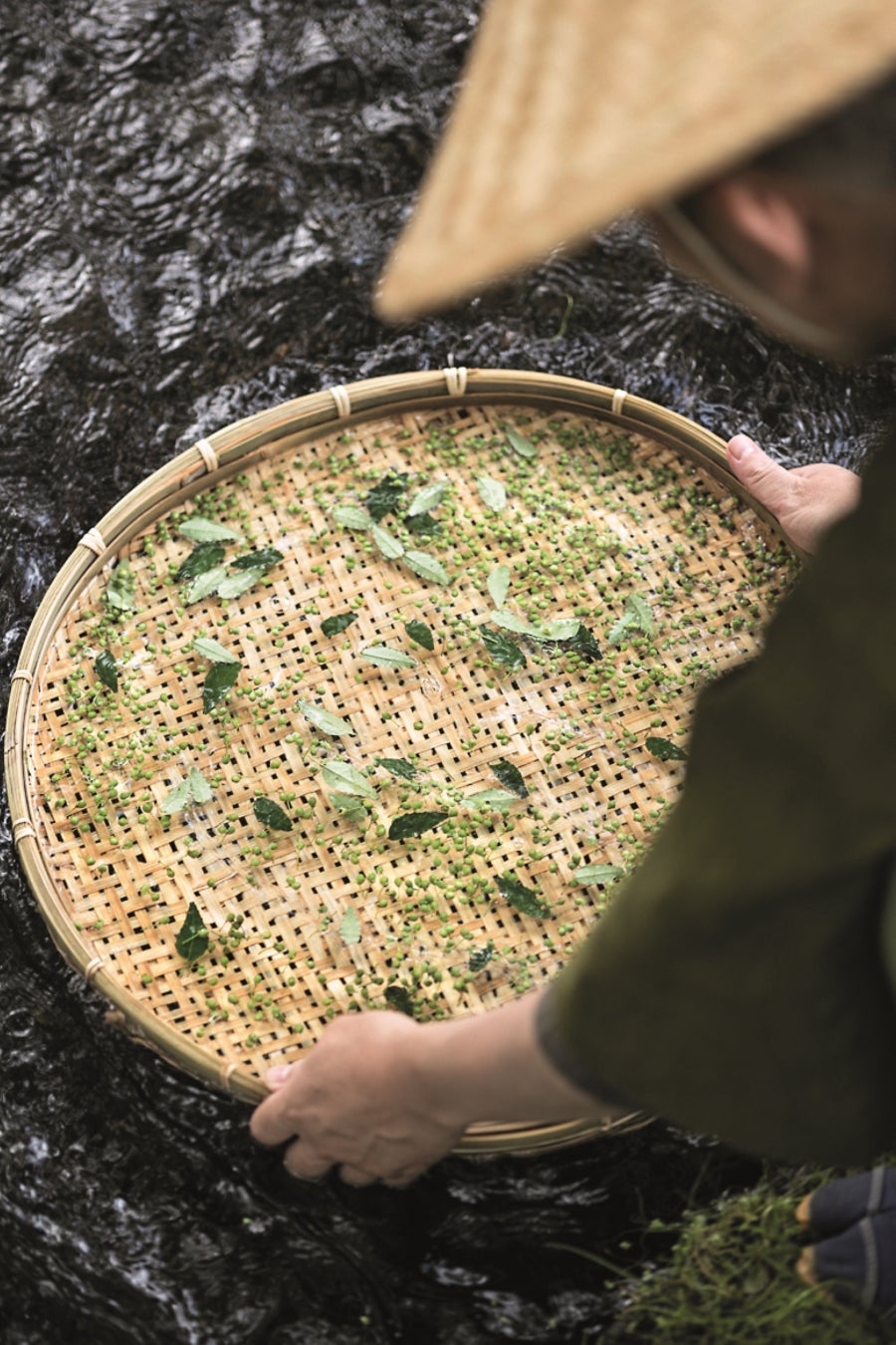 集落中央にあるシンボルツリー「シオジの木」の下で楽しむおやつの時間です。テレビも時計もない集落では、日中、シオジの木の影が日時計の役割を果たします。午後2時から4時ごろ、木の下に設けられた特等席で信州名物の「蒸しそば饅頭」を提供。心地よい葉擦れの音や、目の前を流れる水の音に耳を澄ませながら、ゆったりと流れる時間を過ごせます。