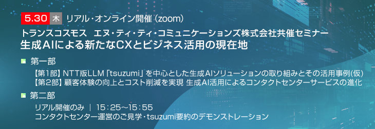 【トランスコスモス エヌ・ティ・ティ・コミュニケーションズ株式会社共催セミナー】生成AIによる新たなCXとビジネス活用の現在地を5/30(木)に開催