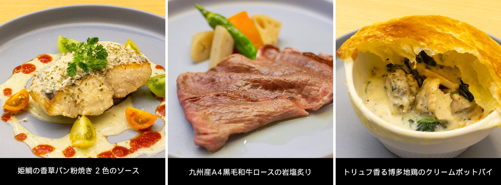 オリエンタルホテル福岡 博多ステーション(所在地:福岡市博多区)のB2F / Restaurant LINK SQUAREにて開催している「LINK SQUARE LUNCH BUFFET」では、2025年5月1日(木)より料理メニューを一新いたします。セミブッフェスタイルで楽しめる本ランチでは、3種類のメイン料理からお好みの1品をお選びいただけます。お客様の目の前で、上質な九州産黒毛和牛をヒマラヤ岩塩の上で炙って仕上げる「九州産A4黒毛和牛の岩塩炙り」、福岡のブランド鶏肉「博多地鶏」を野菜とともに煮込み、アクセントにトリュフの香りを加えてポットパイにした「トリュフ香る博多地鶏のクリームポットパイ」、春から夏に向けて旬を迎える姫鯛を、ハーブを加えた香草パン粉で焼き上げ、さっぱりとしたバジルクリームとトマトソースの2色のソースで仕上げた「姫鯛の香草パン粉焼き 2色のソース」、これら3種類のメイン料理をシェフが自信をもってご提供いたします。