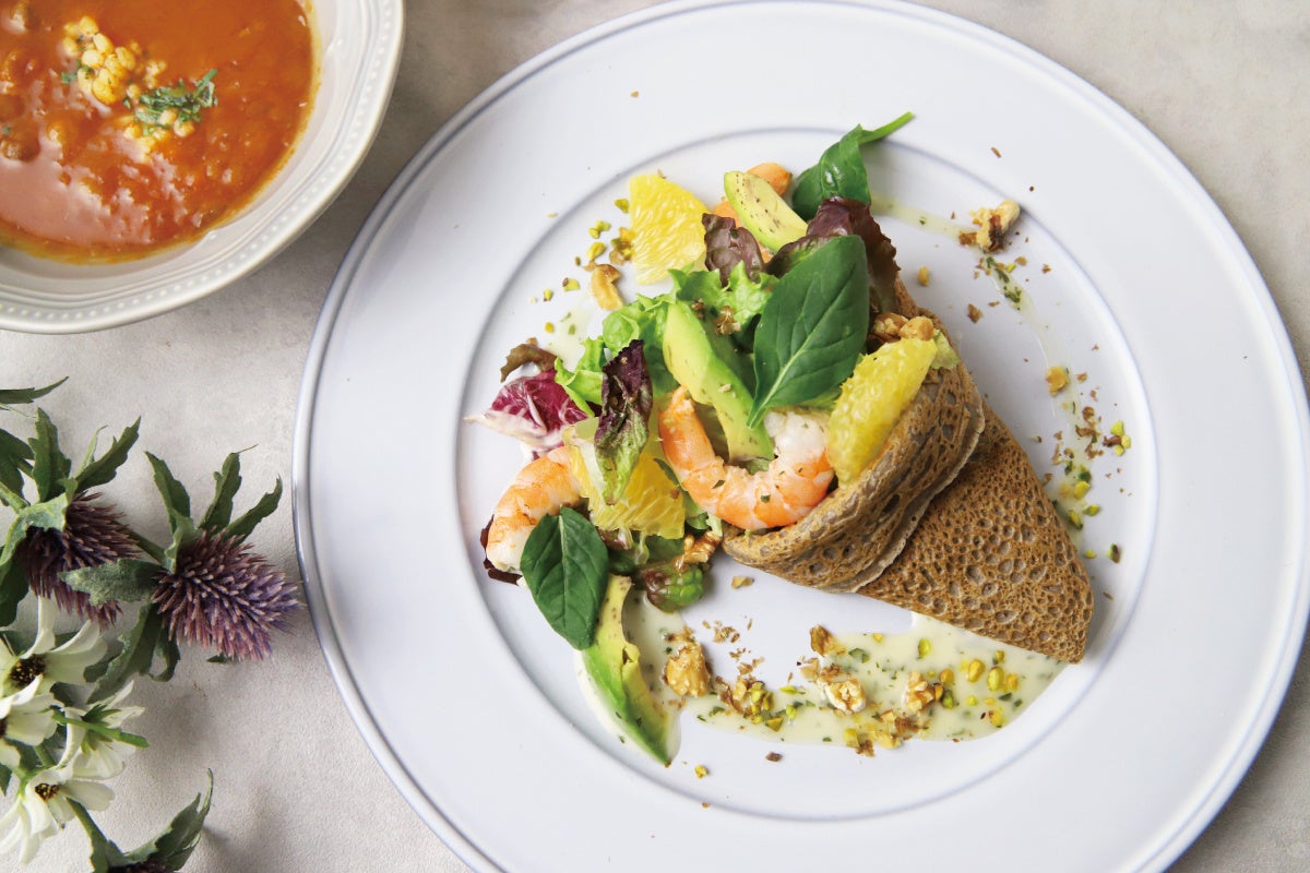 ◆海老とアボカド・柑橘のブーケサラダガレット 自家製ハーブマヨネーズソース