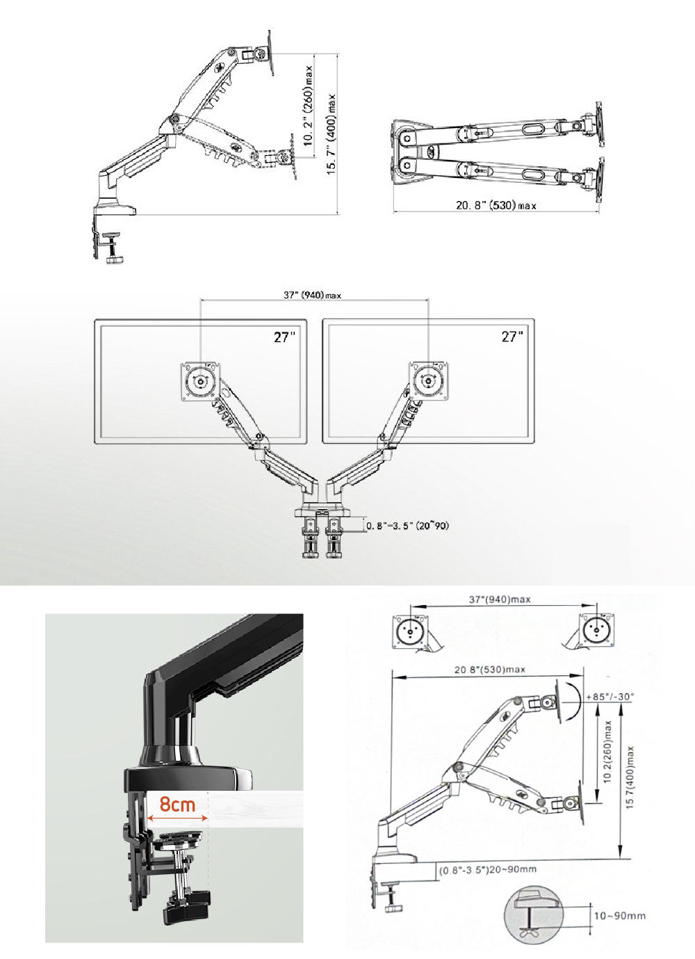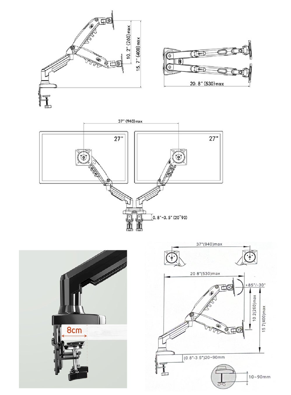 17インチノートPC対応/27インチモニター対応/クランプ設置・グロメット設置可能/デスクをスッキリと整頓