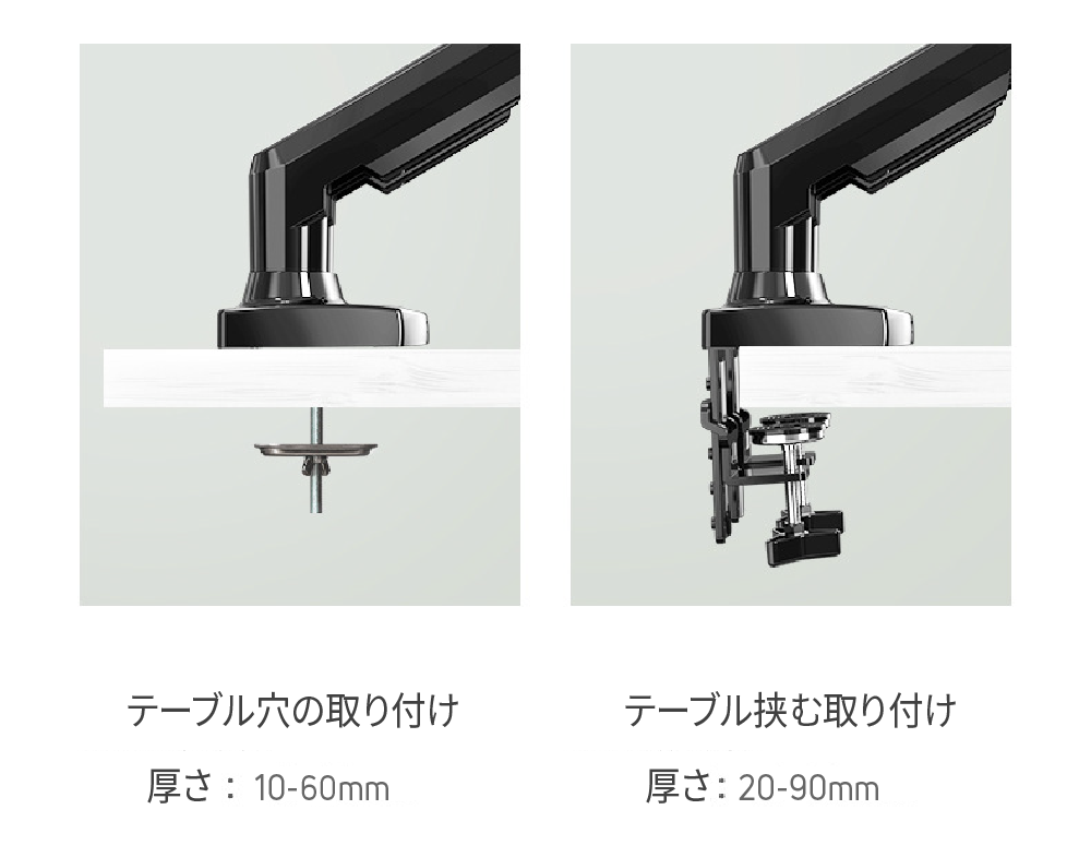 ・選べる2種類の設置方法(テーブル縁を挟んで固定/テーブル穴への取り付け)