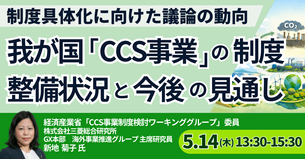JPI(日本計画研究所)は、経済産業省「CCS事業制度検討ワーキンググループ」委員 新地 菊子 氏を招聘し、我が国「CCS事業」の制度整備状況と今後の見通しについて詳説いただくセミナーを開催します。