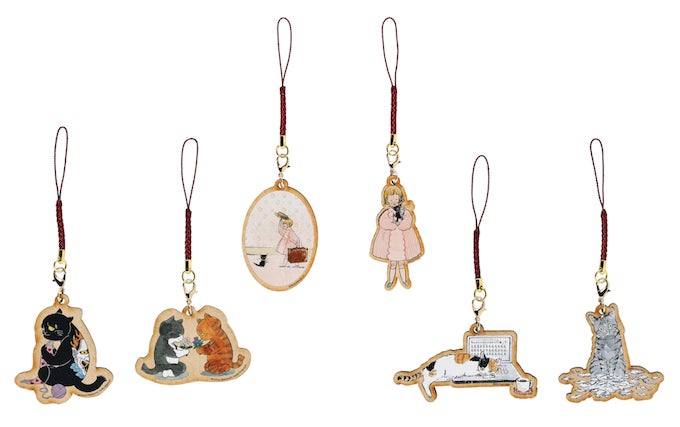 「こねこのトトはおるすばん」「猫かるた」「ねこの5ふんご」木札根付(全6種)