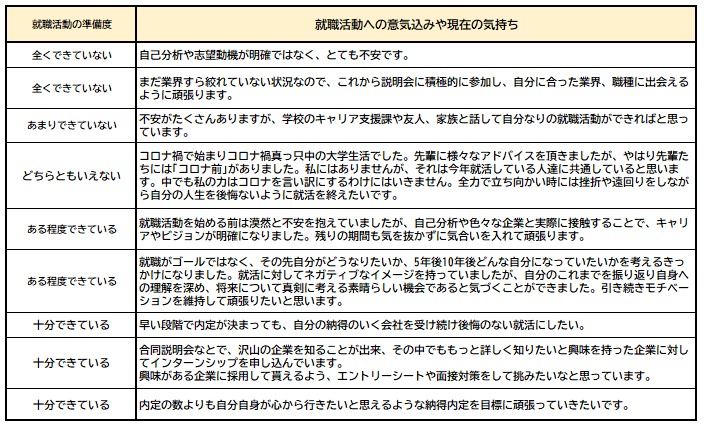 【図7】就職活動への意気込みや現在の気持ち(一部抜粋)