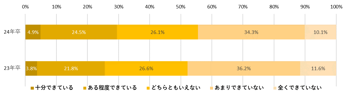 - 就職活動の準備は「あまりできていない」が最多で、「できている」学生は約3割【図6、7】