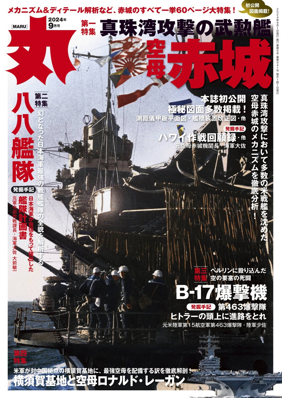 産経新聞グループの潮書房光人新社は、戦史に学ぶ人のミリタリー総合誌、月刊『丸』9月号を発売しました。特集は「空母赤城」。真珠湾攻撃での米戦艦撃沈をはじめ太平洋海戦で大殊勲をあげ、ミッドウェー海戦で最期をむかえた日本海軍を代表する巨大空母に迫ります。赤城のメカニズムを初公開極秘図面で解析するとともに当時の乗組員の発掘手記などを取り上げます。第二特集は戦艦8隻、巡洋戦艦8隻からなる幻の「八八艦隊」計画。グラビアはカラー彩色で蘇える空母赤城、陸自の〝ミリ飯〟も。